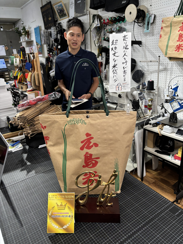 会員企業である株式会社片岡商店の米袋のトートバッグが、LIFE×DESIGN アワードのベストサスティナビリリティ賞を受賞しました。